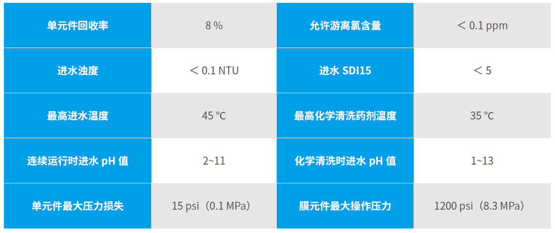 能耗低 改進優(yōu)化芳香族聚酰胺脫鹽層、開發(fā)更大比表面積,滿足在相同產水量要求時,降低運行壓力,從而節(jié)約能源。