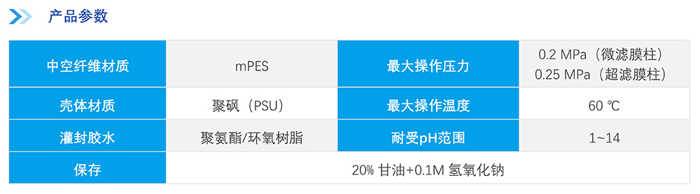 中空纖維膜絲采用改性聚醚砜(mPES)制備,抗污染性能強;非對稱梯度孔結(jié)構(gòu)及均一孔徑保證高過濾精度的同時能獲取更高通量,提高產(chǎn)品收率。中空纖維膜柱采用符合醫(yī)療級別的外殼材料,生物相容性優(yōu)異,在滅菌環(huán)境中穩(wěn)定性優(yōu)良;選用的膠黏劑粘接強度高,耐熱性、耐化學(xué)性及生物相容性優(yōu)良;同時采用優(yōu)化的注膠工藝,注膠精度高,產(chǎn)品無缺陷。